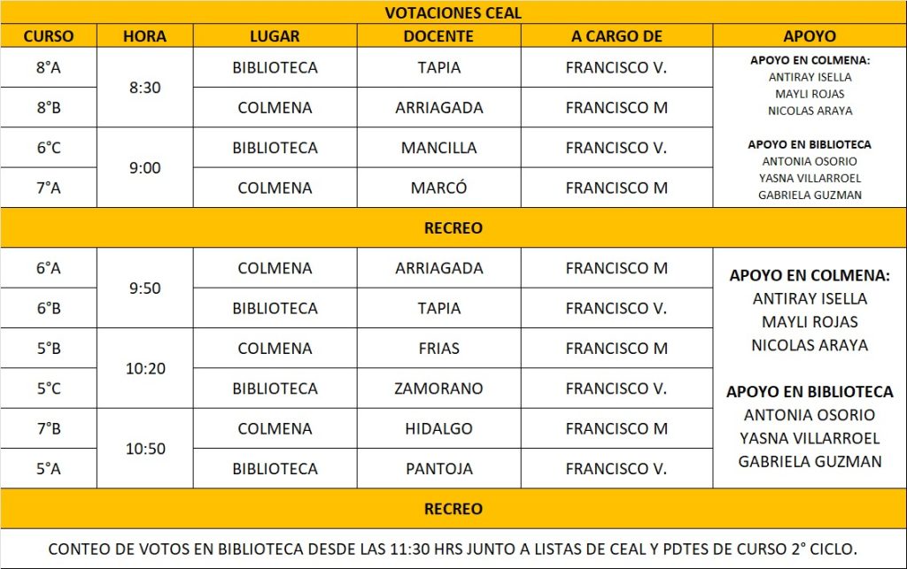 En tanto, la Lista B está integrada por Martina Fuentes (7°B), Mateo Vega (7°B), Catalina Rojas (8°A), Emilia Maldonado (6°C), Renata del Río (7°B) y Anabella Choque (8°B).