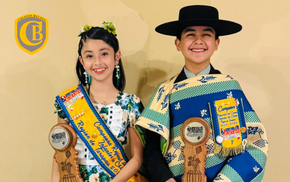 Con gran orgullo, el Colegio Bulnes felicita a los estudiantes Dominique Espinosa Espinoza y Octavio Cabello Rojas, del 7° Básico A, por su destacado logro en la Fecha Regional del Campeonato de Cueca Infantes de Chile, realizada el pasado 21 de septiembre.